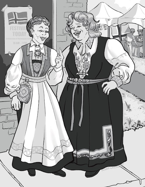 The bunad is the traditional folk costume of Norway, often worn for special occasions and festivals. Based in historic folk dress tradition of Norway, the bunad has evolved over time and geography to become a regionalized and stylized costume. Our sewing pattern presents basic versions of the blouse, vest, skirt, and apron which can be used to create a personalized festdrakt or bunad. Choose fabrics, embroidery, and trim to embellish your bunad to suit exactly what you want.