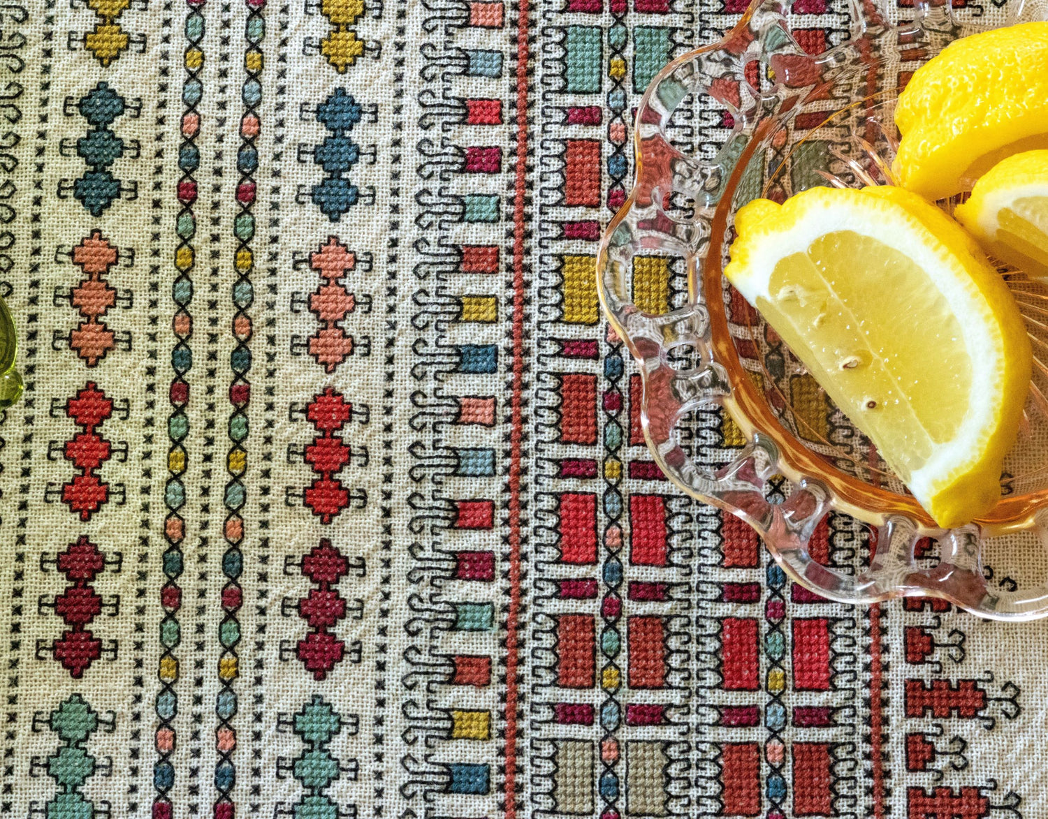 Folk fabrics have been used for hundreds of years to make folk costumes and household embroideries. When you work a cross stitch design on them, they give your stitching a beautiful texture and are a delight to stitch on, plus they're made to stand up to daily use. I source mine from a 3rd-generation family mill in Athens, Greece so you can have an authentic stitching experience.