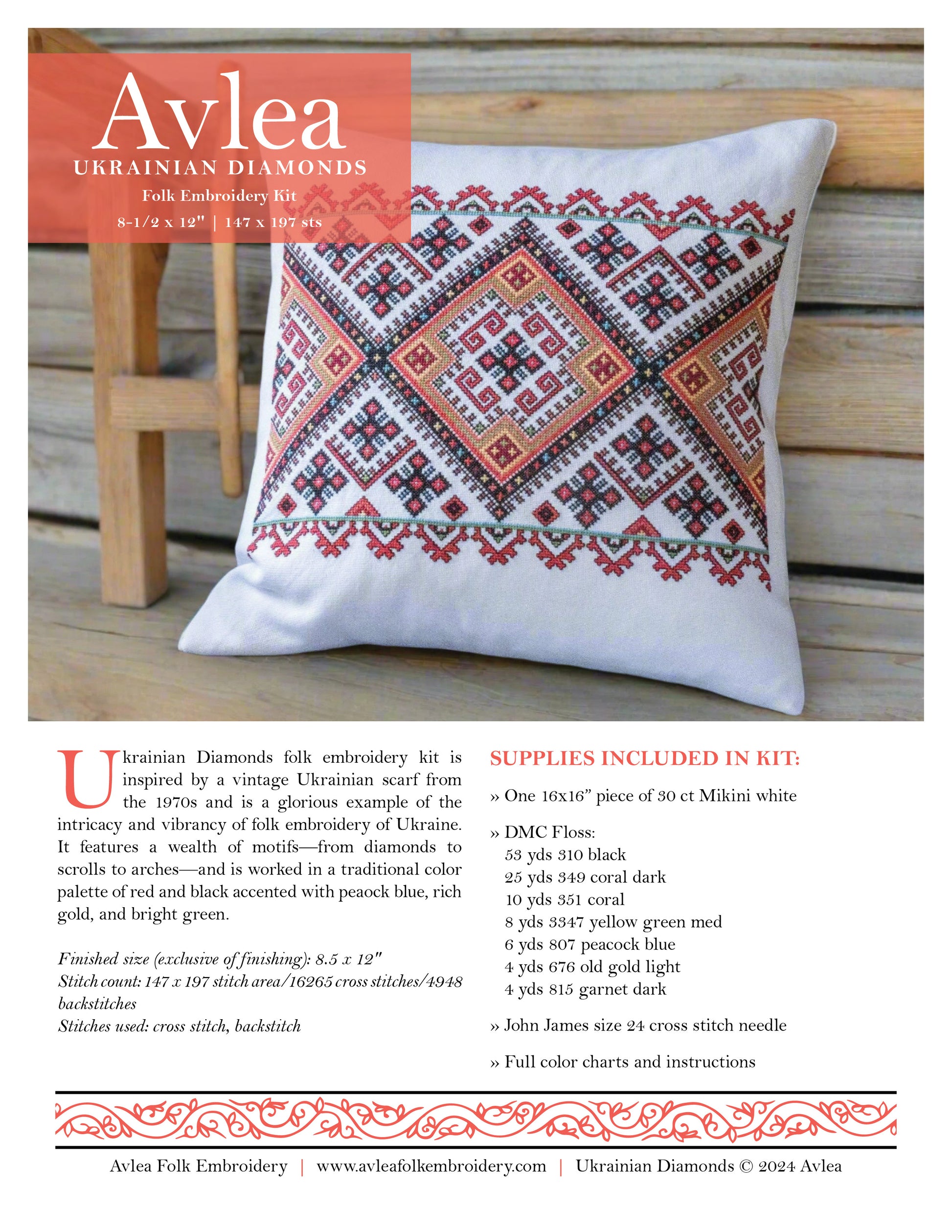 Avlea Folk Embroidery brings ancient beauty to the modern world with beautiful folk embroidery kits of the finest quality. I design and make each kit by hand in my Central Oregon studio, to give you a wonderful stitching experience no matter your skill level.